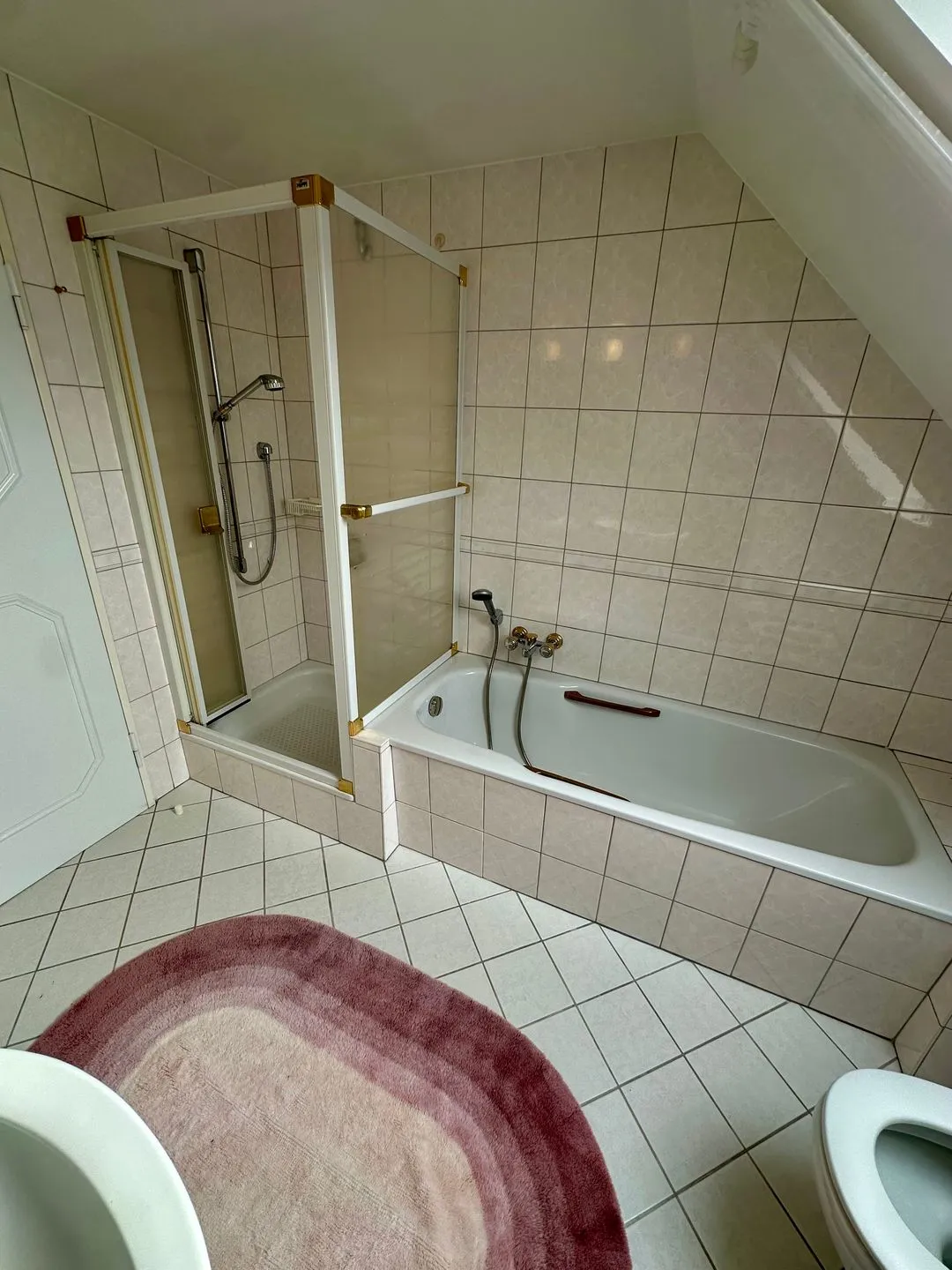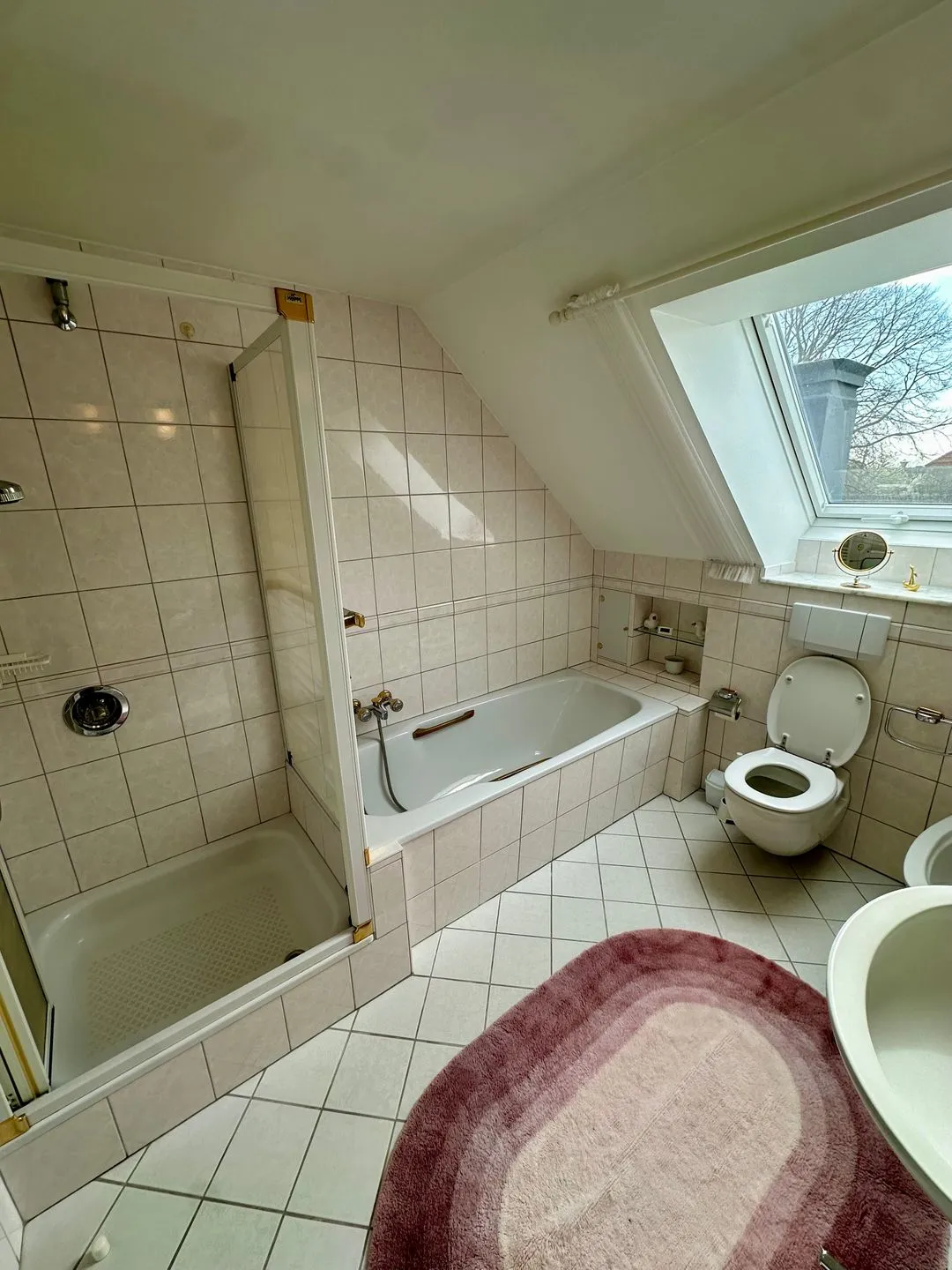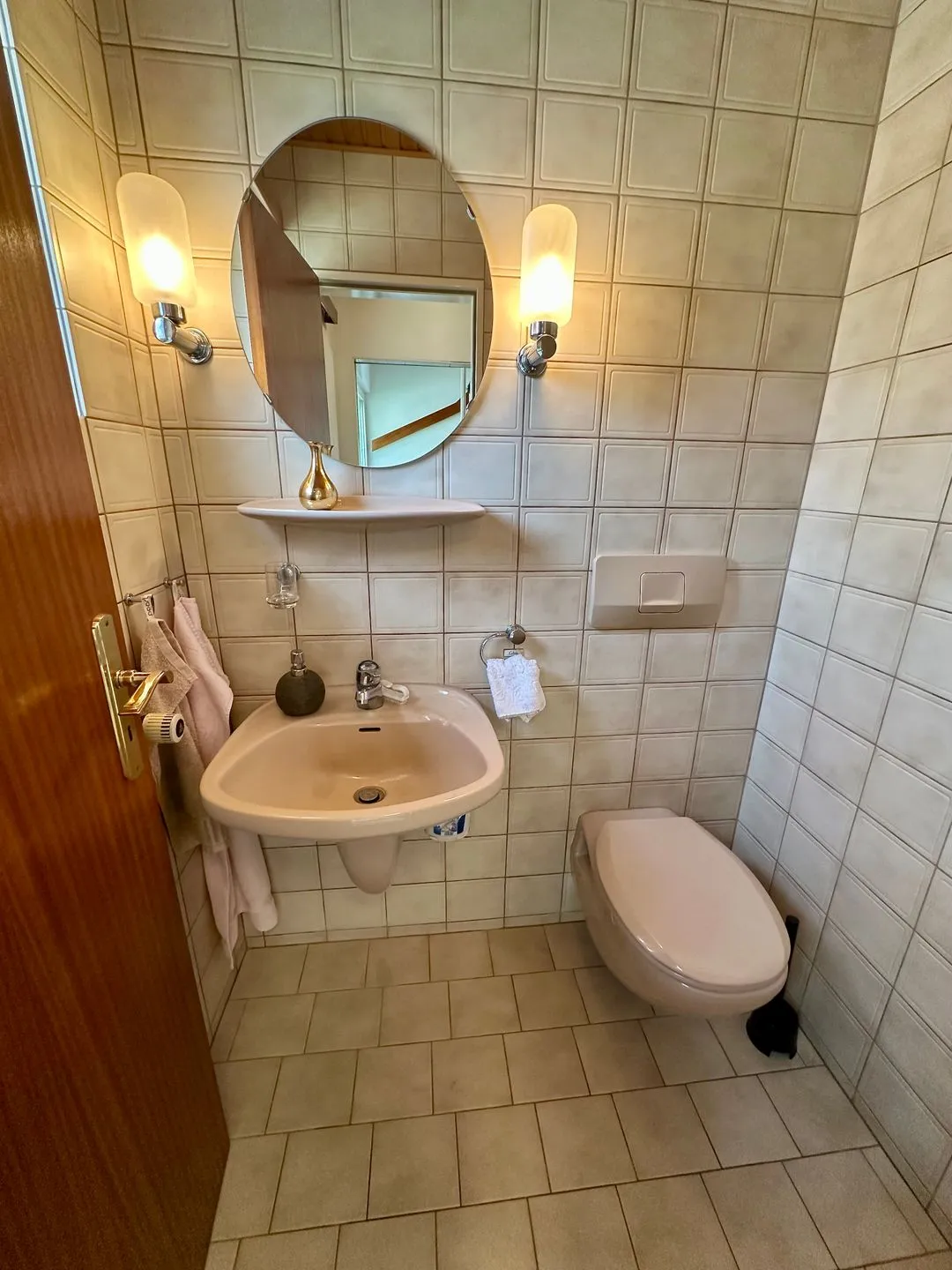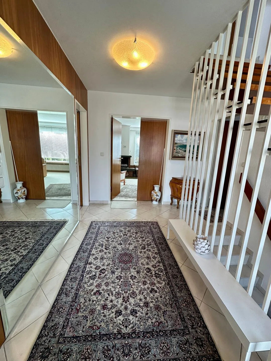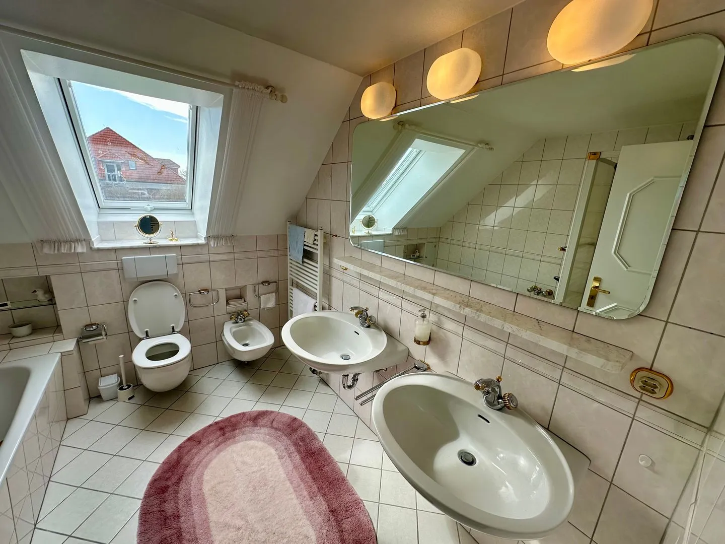 Zwei Badezimmer mit Dusche, Badewanne, WC, Waschbecken, Spiegel, Kosmetikspiegel, Fenster und Haartrockner bieten im Urlaub zusätzlichen Komfort, besonders bei einer Belegung mit mehreren Personen. Auch praktische Ausstattungsmerkmale wie Garderobe, Kommode, Schuhschrank, Ganzkörperspiegel, Staubsauger sowie Feuer- und Rauchmelder sind vorhanden.