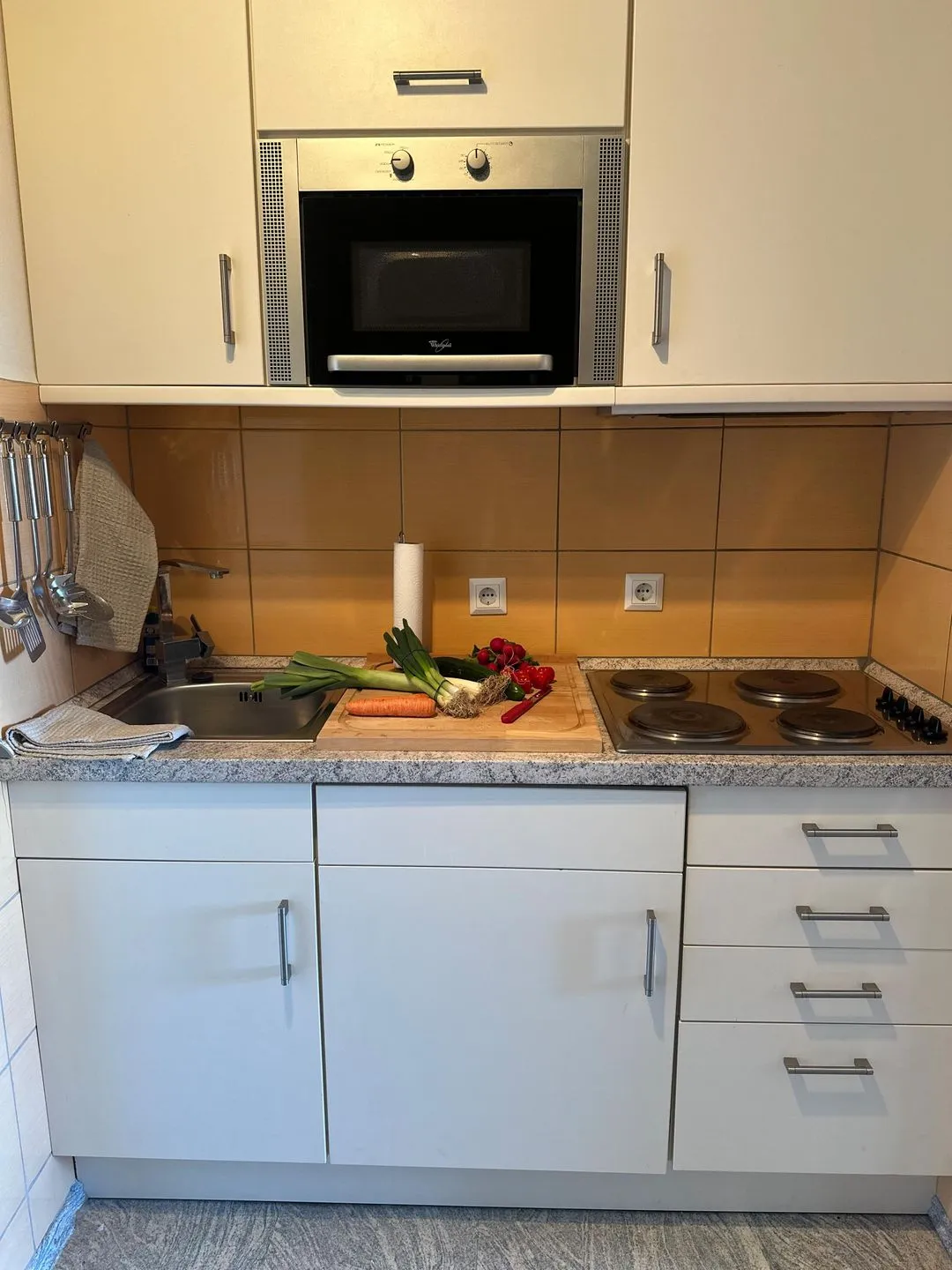 Hier passt alles zusammen, alles ist aufeinander abgestimmt, die Ausstattung ist hochwertig. Die Pantry ist vom Wohn- und Schlafbereich getrennt. Sie ist ausgestattet mit einer Mikrowelle, Kühlschrank mit Gefrierfach. Das hell geflieste Bad mit Dusche und WC runden die Ferienwohnung ab. Ihren PKW können Sie direkt vorm Haus parken.